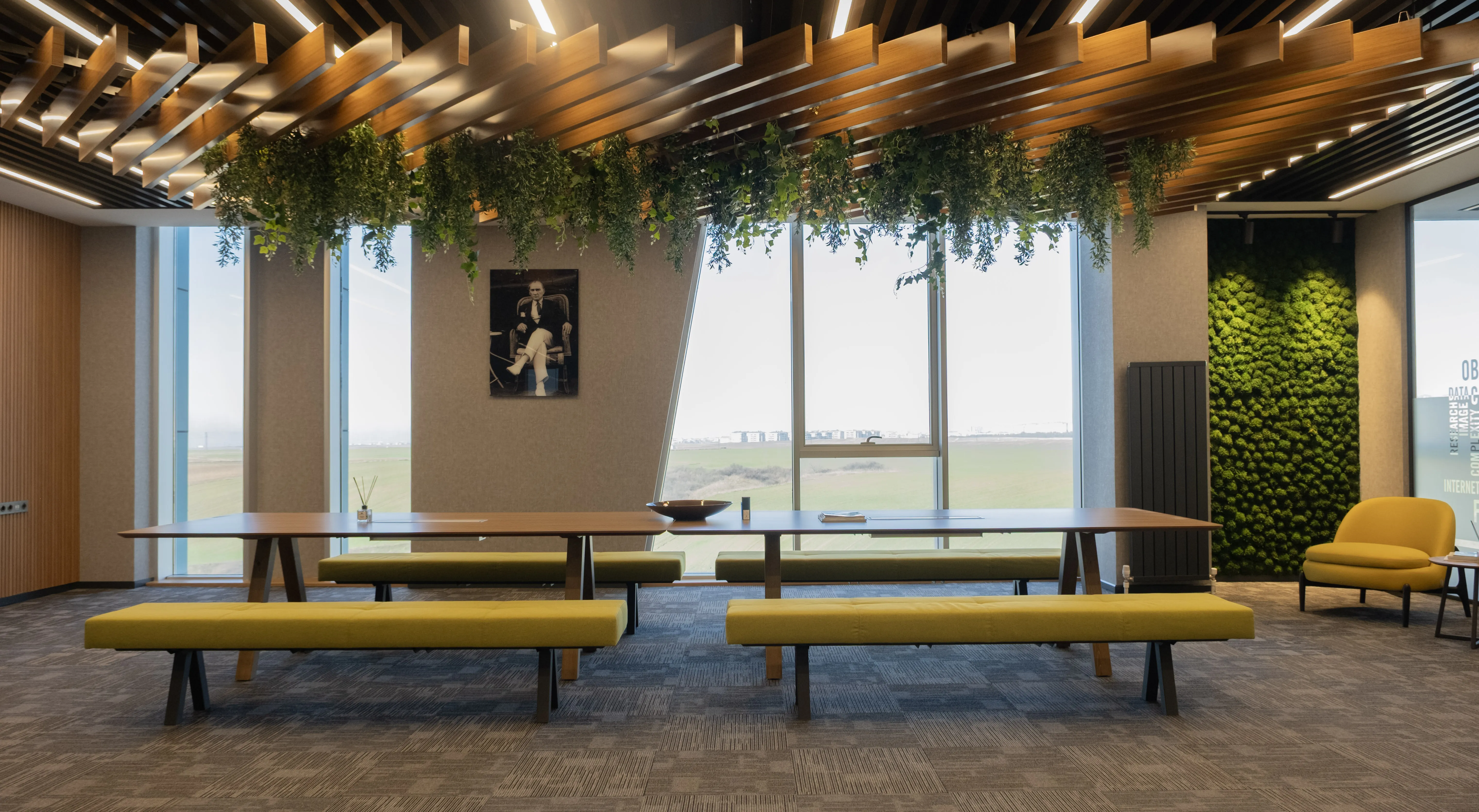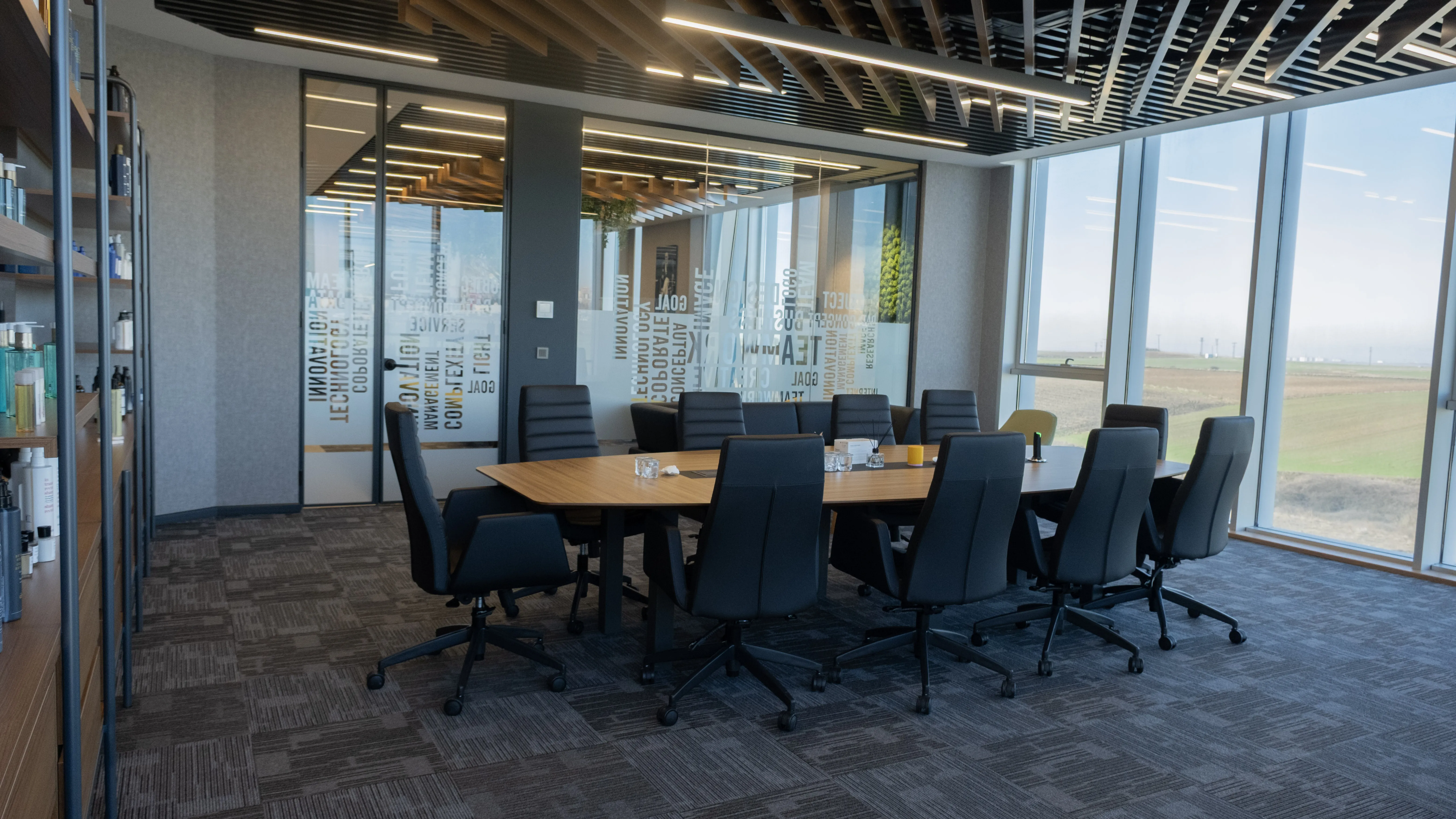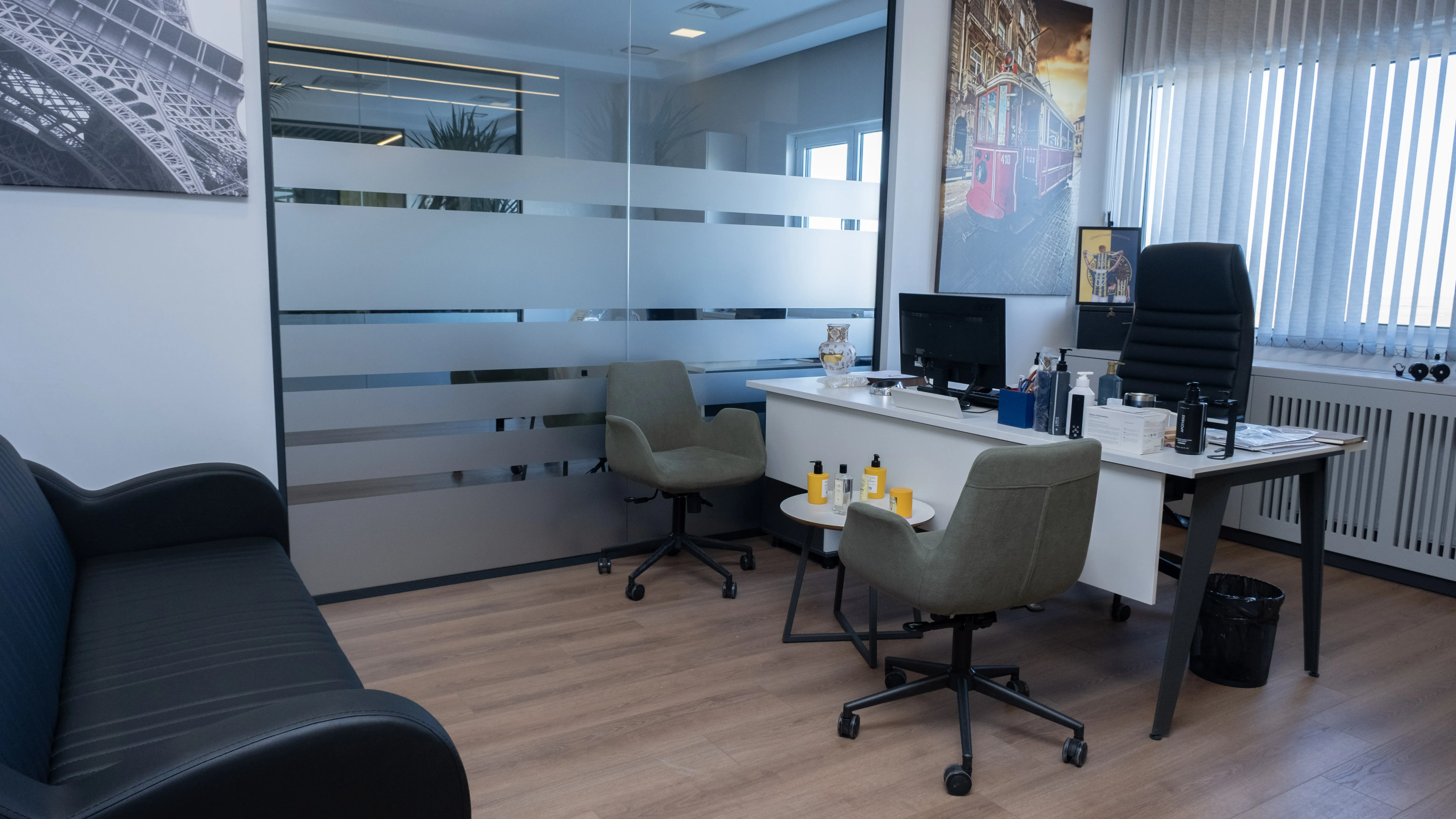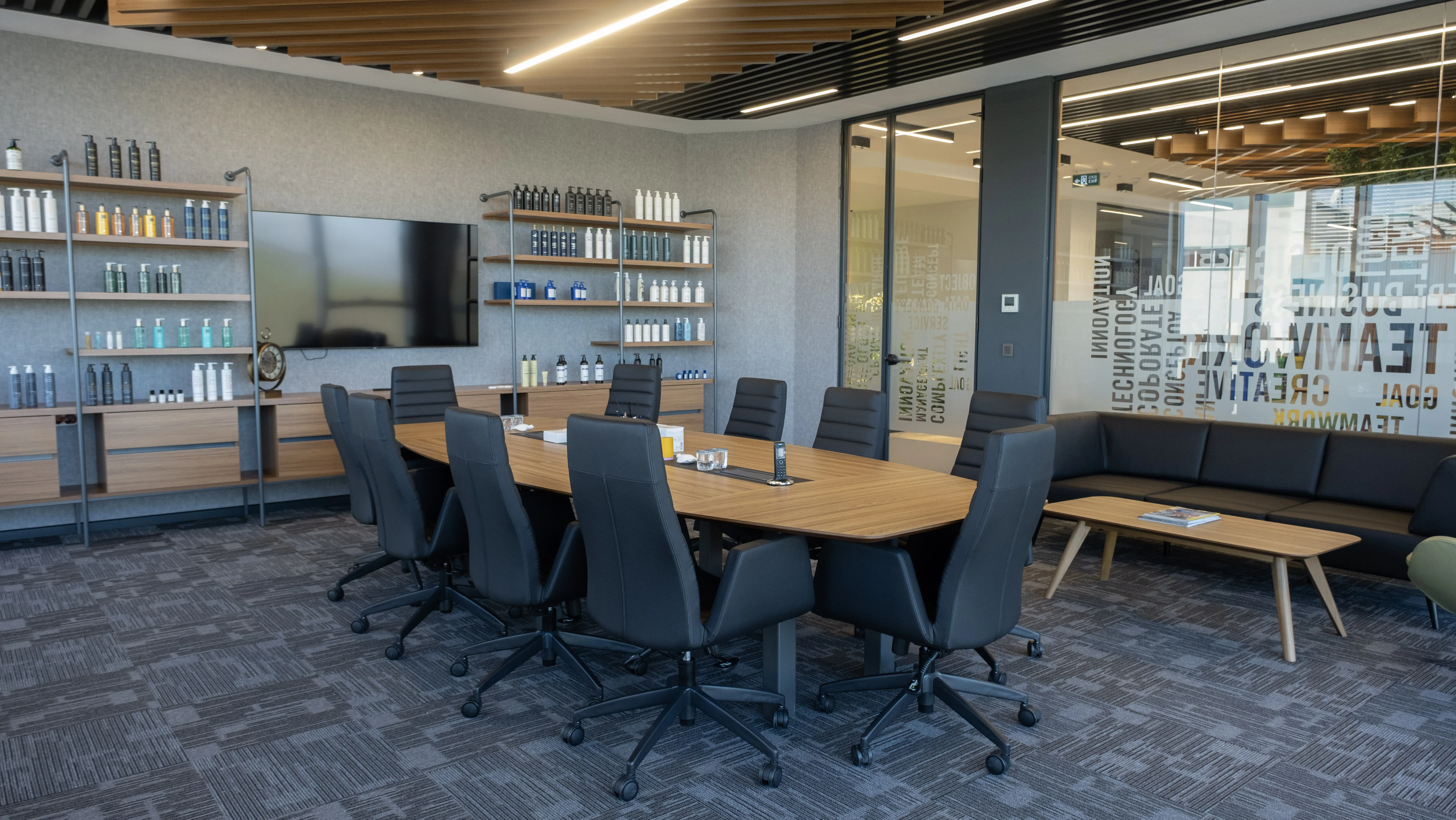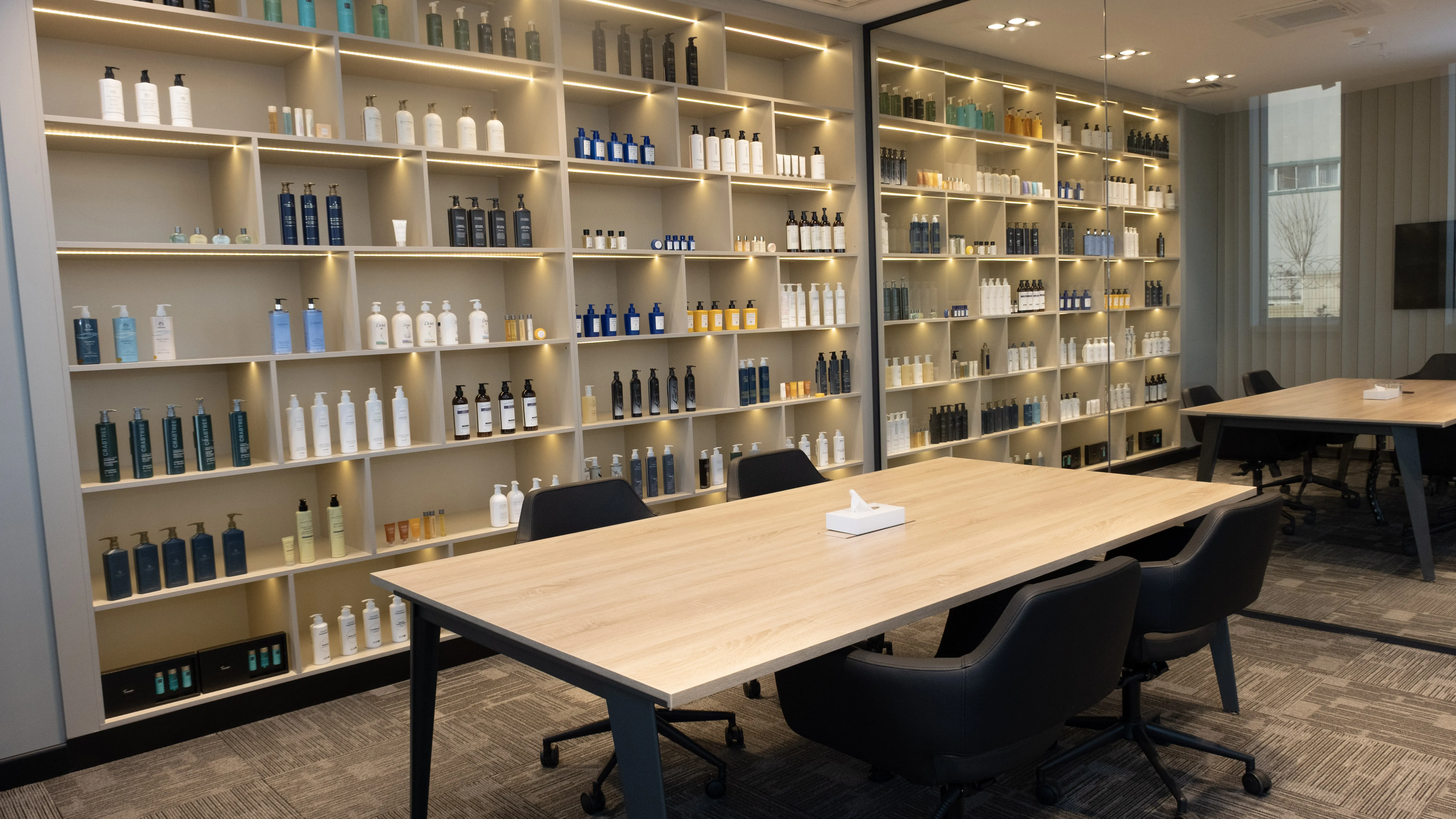 Temko Kozmetik için tasarlanan projede, kurumsal kimliği yansıtan modern ve işlevsel bir çalışma alanı oluşturuldu. Geniş camlar, ahşap paneller ve bitkilendirme ile ferah bir lobi, sade ve konforlu bir ofis düzeni kurgulandı.